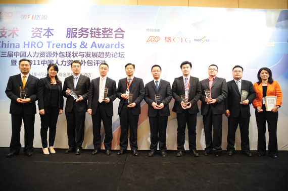 由人力資源行業(yè)專業(yè)媒體《第一資源》主辦的第三屆中國人力資源外包服務(wù)業(yè)現(xiàn)狀與發(fā)展趨勢(shì)論壇暨2011中國人力資源外包評(píng)選的頒獎(jiǎng)典禮于2011年4月14日在上海金茂君悅大酒店隆重舉行。本次論壇吸引了近30家全國知名人力資源服務(wù)商、20多家媒體和近百位企業(yè)HR管理者相聚上海共話人力資源外包業(yè)的趨勢(shì)和變革。
