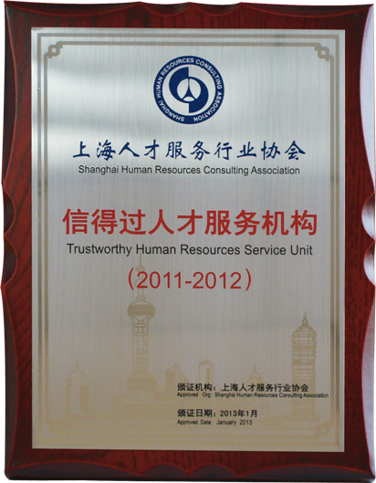 藍海集團榮獲“2011-2012年上海市信得過人力資源服務機構(gòu)”的殊榮,是社會、業(yè)界及客戶對藍海的充分肯定。今后藍海集團將不斷創(chuàng)新,致力于推進人力資源服務行業(yè)更加健康、快速的發(fā)展。