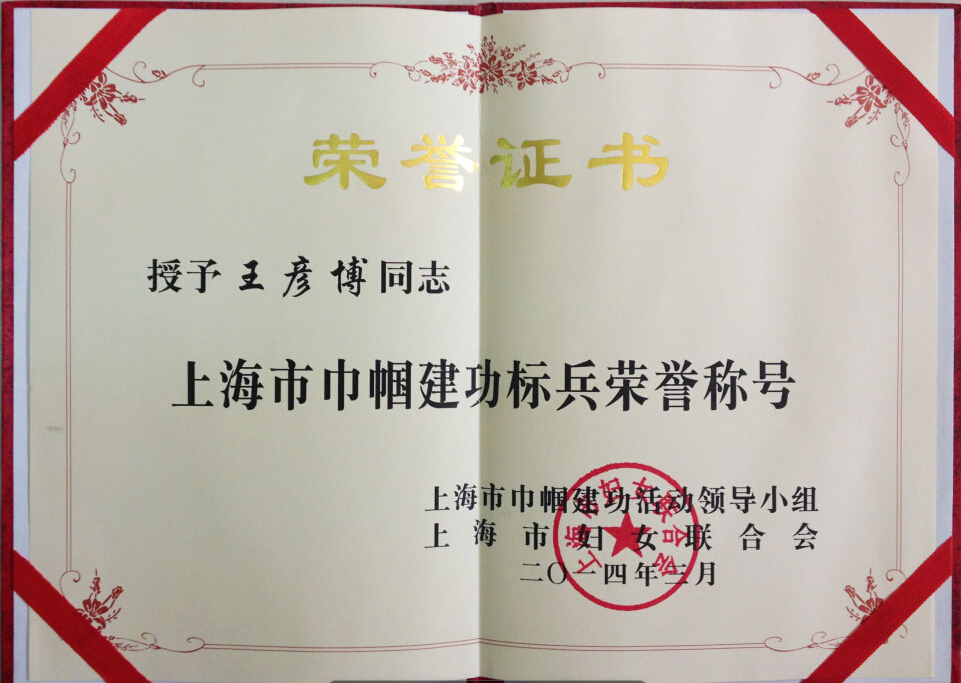 藍海集團董事長王彥博榮獲"2013年度上海市巾幗建功標兵"稱號