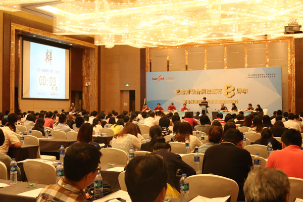 2015年6月27日,由上海藍(lán)海人力資源股份有限公司和騰訊公眾號(hào)“上海勞動(dòng)法圈子”聯(lián)合舉辦的“紀(jì)念勞動(dòng)合同法頒布8周年暨非標(biāo)準(zhǔn)勞動(dòng)關(guān)系發(fā)展趨勢(shì)探討主題研討會(huì)”成功召開(kāi)。整場(chǎng)研討會(huì)由著名的勞動(dòng)法專(zhuān)欄作家、《上海人力資源社會(huì)保障》雜志主編周斌主持,上海藍(lán)海人力資源股份有限公司董事長(zhǎng)王彥博、上海人才服務(wù)行業(yè)協(xié)會(huì)秘書(shū)長(zhǎng)朱慶陽(yáng)、上海市法學(xué)會(huì)勞動(dòng)法研究會(huì)副會(huì)長(zhǎng)兼秘書(shū)長(zhǎng)郭文龍、上海市法學(xué)會(huì)勞動(dòng)法研究會(huì)副會(huì)長(zhǎng)張憲民、華東政法大學(xué)教授博導(dǎo)田思路、華東理工大學(xué)教授博導(dǎo)劉金祥等在研討會(huì)上分別致辭并發(fā)言。此次研討會(huì)共有來(lái)自上海及長(zhǎng)三角地區(qū)的近百位政府主管官員、法院、勞動(dòng)仲裁、勞動(dòng)監(jiān)察、高校、專(zhuān)業(yè)勞動(dòng)法律所等勞動(dòng)法相關(guān)領(lǐng)域的知名專(zhuān)家學(xué)者,及百余名企業(yè)高管、人力資源總監(jiān)、工會(huì)領(lǐng)導(dǎo)、勞動(dòng)法愛(ài)好者共聚一堂,共同研討勞動(dòng)合同法、勞動(dòng)用工管理、勞動(dòng)爭(zhēng)議處理的重點(diǎn)、難點(diǎn)和熱點(diǎn)問(wèn)題。此次研討會(huì)集權(quán)威性、高水準(zhǔn)、法理與實(shí)務(wù)相結(jié)合,在行業(yè)內(nèi)首次以辯論賽的形式對(duì)非標(biāo)準(zhǔn)勞動(dòng)關(guān)系進(jìn)行專(zhuān)業(yè)解讀研討,活動(dòng)現(xiàn)場(chǎng)學(xué)術(shù)氛圍濃厚,思想的碰撞、觀(guān)點(diǎn)的交融可謂精彩絕倫、盛況空前。