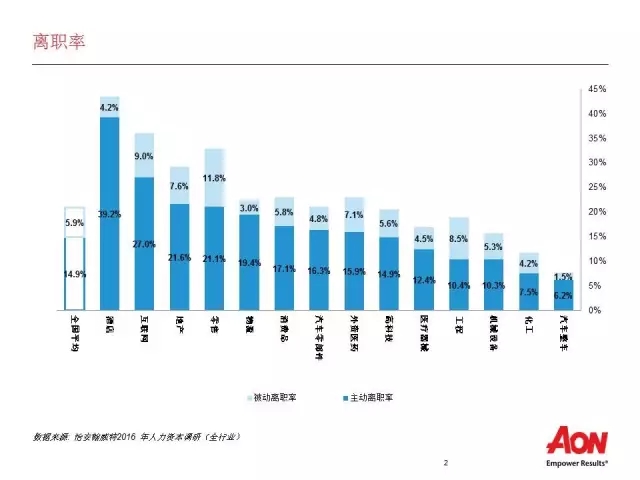 2016年中國(guó)企業(yè)平均員工薪酬增長(zhǎng)為6.7%,員工離職率為20.8%,其中主動(dòng)離職率為14.9%,被動(dòng)離職率為5.9%。本次調(diào)研覆蓋了北上廣深及主要二三線城市共計(jì)3000余家企業(yè),涉及高科技、互聯(lián)網(wǎng)、地產(chǎn)、金融、醫(yī)療保健、汽車、機(jī)械設(shè)備和工業(yè)制造、消費(fèi)品、零售、化工、物流、工程、酒店等十余個(gè)重點(diǎn)行業(yè)。