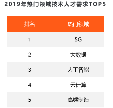近日,獵聘大數(shù)據(jù)顯示,在2019年熱門領(lǐng)域技術(shù)人才需求TOP5中,5G領(lǐng)域位居第一,其對(duì)技術(shù)人才的需求高于大數(shù)據(jù)、人工智能、云計(jì)算和高端制造。5G應(yīng)用涉及的領(lǐng)域極為廣泛,其發(fā)展需要技術(shù)、研發(fā)力量的大力支持,因此對(duì)中高端技術(shù)人才的需求十分旺盛。